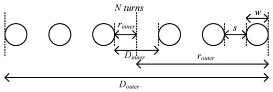 In [8], the self-inductance of the spiral coil is approximated by using the concept of average of diameter of the coil as shown in Equation (13).