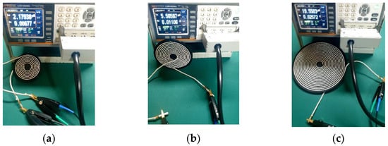 To validate the proposed method, three random sampled coils with different sizes are fabricated, and their inductances are measured using Gwinstek LCR-6020 m. The testing frequency for this measurement is 20 kHz. Finally, the measurement results are compared with the calculation result, and their results are presented in Table 1. In addition, the measured results are also shown in Figure 10.