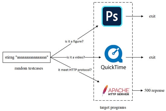 According to the method of generating test cases, the fuzzing technology can be divided into completely random fuzzing [], mutation-based fuzzing [], and generation-based fuzzing []. Among the above technologies, random fuzzing is difficult to meet the HTTP protocol [] specification; the mutation-based fuzzing requires a long mutation time to generate a seed for HTTP protocol; the generation-based fuzzing can quickly generate suitable test cases. However, web generation-based fuzzing experiences a bit of feedback information from the feedback module, which makes it difficult to mutate excellent seeds. The following will introduce the problems of the current three technologies in detail and introduce how our methods solve the current problems.