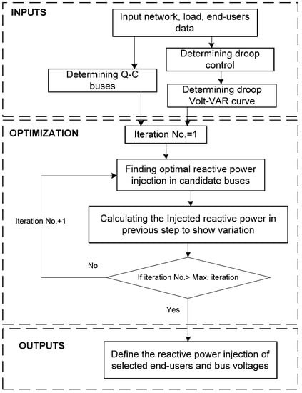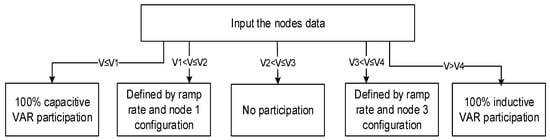 As depicted in Figure 2, the participation of the end-users with power–electronic interfaces is defined based on the network condition and Volt-VAR program. These types of end-users can manage their participation such that they have the best influence on network stability and voltage-profile enhancement.