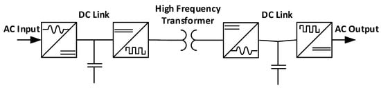 The power–electronic interface, considering its topology, is capable of voltage regulation and electrical isolation. As a result of these capabilities, these type of devices enable end-users to participate in Volt-VAR programs and reactive power injection/absorption based on the network status. A schematic of the power–electronic interface depicted in Figure 3.