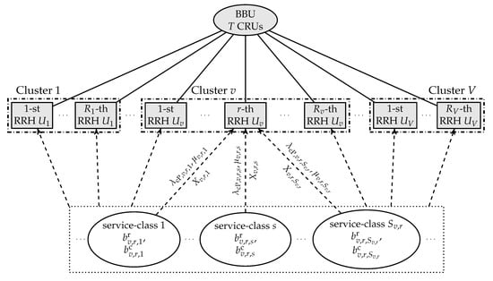 - Chousainov, I.A.; Moscholios, I.; Sarigiannidis, P.; Logothetis, M. Multiservice Loss Models in Single or Multi-Cluster C-RAN Supporting Quasi-Random Traffic. Appl. Sci. 2021, 11, 8559. [Google Scholar] [CrossRef]