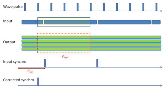 Now, we know that the first output block corresponding to an input pattern starts at d o p t = d c o a r s e + d f i n e samples from the beginning. This is represented by “input synchro” in Figure 8.