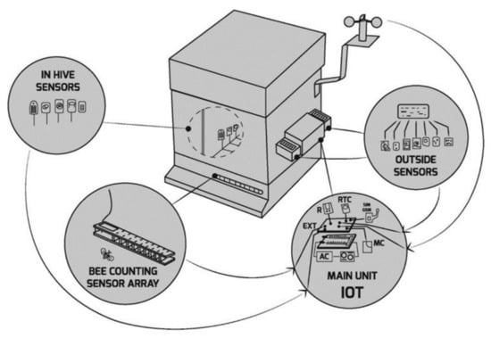 - Supandi; Arkan, F.; Gusa, R.F.; Jumnahdi, M.; Kurniawan, R. Design of system for setting the temperature and monitoring bees in and out the hive. IOP Conf. Series: Earth Environ. Sci. 2020, 599, 012050. [Google Scholar] [CrossRef]