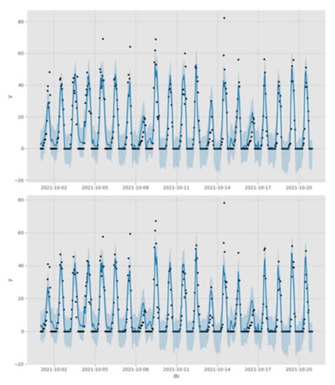 - Taylor, S.J.; Letham, B. Forecasting at scale. Am. Stat. 2018, 72, 37–45. [Google Scholar] [CrossRef]