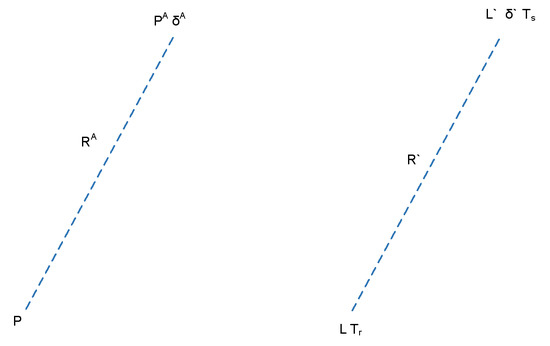 where and are the ship domain radiuses of the OS and TS, respectively; is the sum of , , and the safe distance between OS and TS (). We have