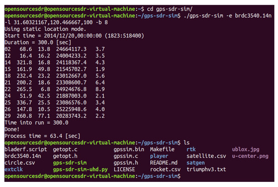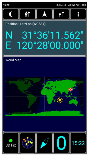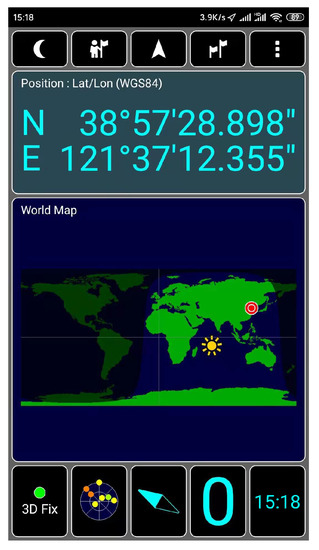 We use GPS-SDR-SIM as a GPS signal generator code, which can produce spoofing GPS signals. GPS-SDR-SIM is an open-source GPS generator project. To make it easier for readers to understand GPS spoofing, we introduce the process of GPS spoofing step by step. We download and compile the GPS simulator code from GitHub, as shown in Figure 14. Then, we can generate GPS longitude and latitude information that we want to spoof through online tools and generate GPS simulation data through GPS simulator according to this longitude and latitude information, as shown in Figure 15. Among them, 31.60321167 and 120.4666667 are the GPS longitude and latitude of spoofing to be transmitted to the GPS receiver. After the execution of the above command, the gpssim.bin file is generated, which saves the GPS spoofing data generated by the simulation code, as shown in Figure 16. The GPS test app for mobile phones is GPS Test Plus. Before starting the GPS spoofing attack, open the app of GPS Test Plus and check the physical position of the mobile phone, as shown in Figure 17.