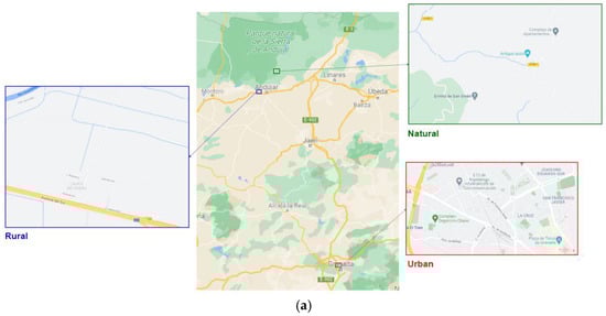 Natural disasters are unanticipated and damaging events. Nowadays, natural disasters are beyond our control and have a great impact on society. Some of the disasters that occur annually are volcanic eruptions, snowstorms, torrential rains and floods, as well as fires, mostly forest fires, which have devastated thousands of hectares. These natural disasters require management, monitoring and action by professionals such as the country’s security forces, including rescue teams and firefighting teams, among others. These professionals act according to their duty and face extreme conditions in the interest of public safety, but they also act in times of emergency which endanger people or their property. To give a little more context with data, the number of fires reported in Spain in a year is over 500. These fires are usually reported to the Spanish National Center for Tracking and Coordination of Emergencies (CENEM) [1]. Approximately one fifth of these cases happened in the mountain areas of Andalusia, and with regard to civil emergency cases, there were more than 30 active searches for missing people per 100,000 people in Andalusia, as well as almost 1000 rescues performed by the Guardia Civil mountain rescue team in Spain [2,3]. In addition to the problem of natural disasters, there is also the problem of connectivity for these professionals when their work is carried out in areas where there is no cellular coverage. These areas without coverage are called shadow zones and are found in rural and natural areas where mobile network operators (MNOs) have not deployed their infrastructures, as shown in Figure 1.