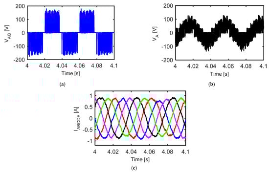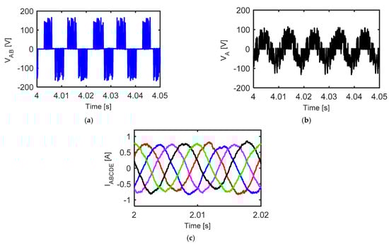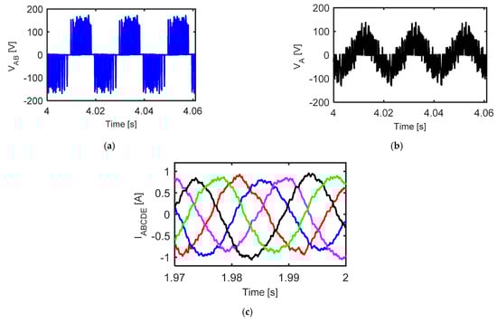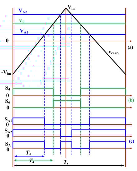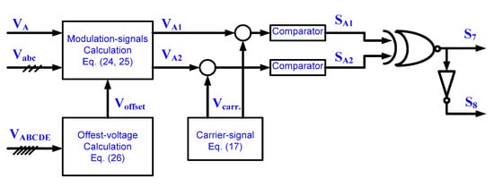For a generic formulation for the other phases, the modulation signals for switch can be written as in Equations (24) and (25). In Equations (24)–(27), M represents the output phase number A, B, C, D and E, and indicate the maximum and minimum values of the output phase voltages, respectively.