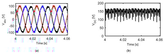 Experimental results (a) phase input voltages and (b) the voltage of DC link.
