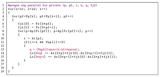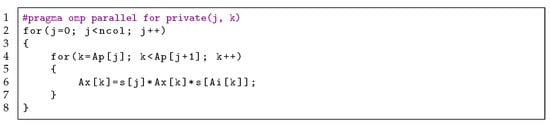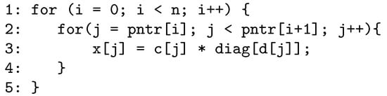 Example loop to parallelize. This loop performs symmetric scaling of a sparse matrix A by a scaling factor s, where s is a diagonal vector. The outer loop can be parallelized if array is monotonically increasing.