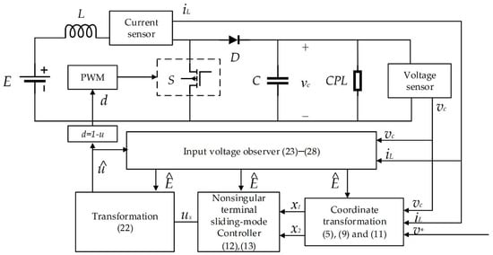 - A finite-time-parameter, observer-based sliding mode control for the boost converter feeding a CPL was designed to ensure the finite-time stability of the closed-loop system when the input voltage is unknown;