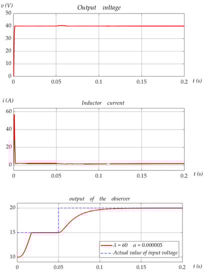 Here, we test the tracking performance of the presented parameter observer with the controller’s parameters . When t = 0.05 s, there is a step change in input voltage E.