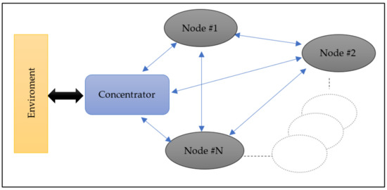 Figure 1 shows the general diagram of the proposed telemedicine system. It consists of nodes (Node #1,..., Node #N) with sensors of number and types selected according to the needs of particular application. These nodes are the multisensory acquisition points of the distributed system and communicate using the BLE-M-LR protocol.