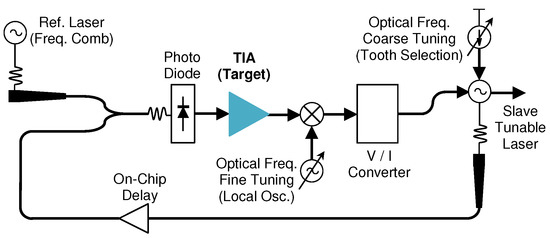 - Ashtiani, F.; Aflatouni, S.Z. Integrated electro-optical phase-locked loop for high resolution optical synthesis. Optics Express 2017, 25, 16171–16181. [Google Scholar] [CrossRef] [PubMed]