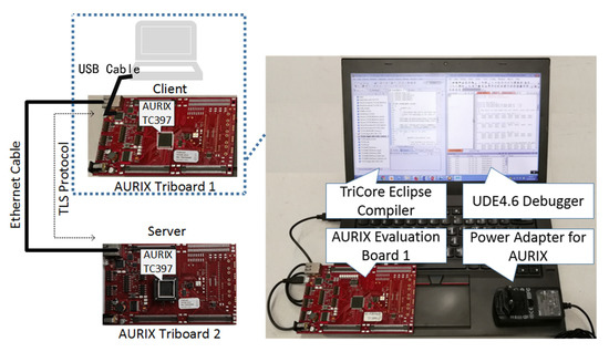 The experiment was conducted on the Infineon AURIX TC397 high-performance microcontroller (Infineon, Neubiberg, Germany) [21], which is mainly used for applications such as for in-vehicle domain controllers and advanced gateways.
