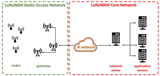 The network is made up of several parts. On the one hand, a radio access network based on an LPWAN (Low Power Wide Area Network) suitable for mass sensor communications. More specifically, a LoRaWAN (Long Range Wide Area Network) [1] network has been chosen due to its adequate characteristics of low power consumption, high coverage, easy scalability, and its license free operation, which facilitates its development and reduces costs.