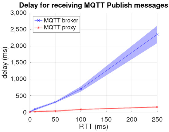As described in Section 4, we introduced MQTT proxies in the edge nodes of the SDN network in our architecture. MQTT proxies reduce the amount of MQTT traffic within the SDN network and its latency.