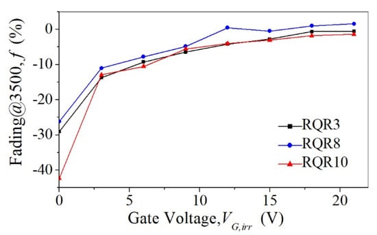 Fading at 3500 h versus gate voltage during irradiation.