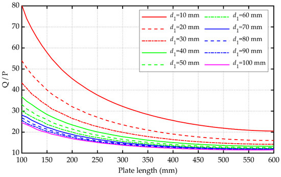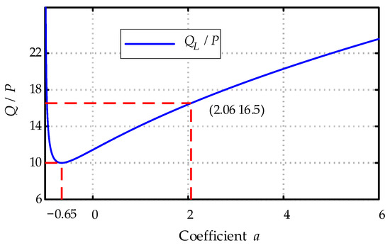 It should be noted that when b is given, the theoretical minimum QL/P can be obtained from Equations (29) and (30). If we assume that the value of b does not change with the variation of a, the relationship between the ratio of QL/P and the coefficient a is shown in Figure 11. The minimum QL/P value of 10 can be achieved when the coefficient a is −0.65. To make the coefficient a higher than 0, the value of b should be less than 5.25.