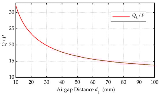 Ratio of reactive power Q to transferred power under different airgap distance d1.