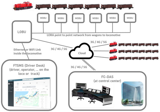 A centralised wireless architecture is proposed for the freight train digital composition and control of the functions, as seen in Figure 2. The subsections below present the HW, FW and SW definition of the Wagon On-Board Unit system deployed in each wagon, which is a connected multiprocessing platform. In the next figure, LOBU stands for Locomotive On-Board Unit, FTSMS stands for Freight Train Status Monitoring System, and FC-DAS stands for Freight Convoy-Driver Assistance System.