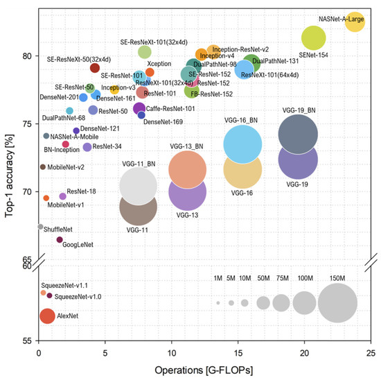 Ball chart reporting the Top-1 ImageNet-1k accuracy vs. computational complexity. The size of each ball corresponds to the model’s complexity. (Reprinted from ref. [4]).
