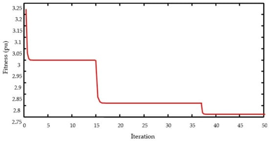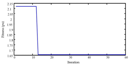 Convergence changes of the PSO in locating the PSS of the four-machine power system in the second scenario.