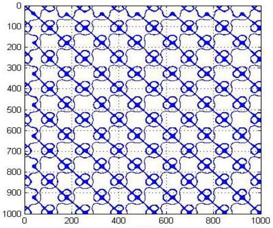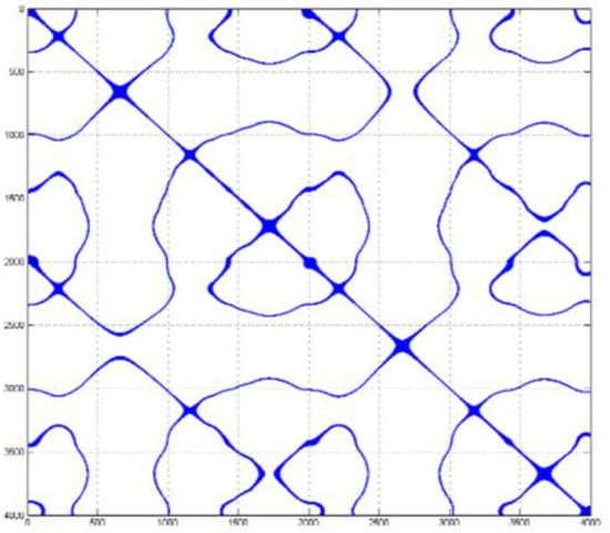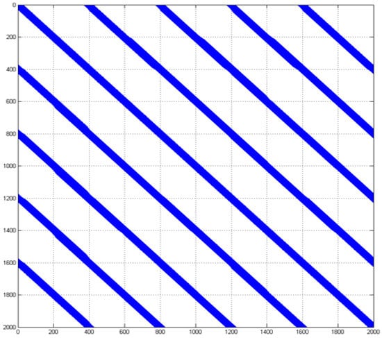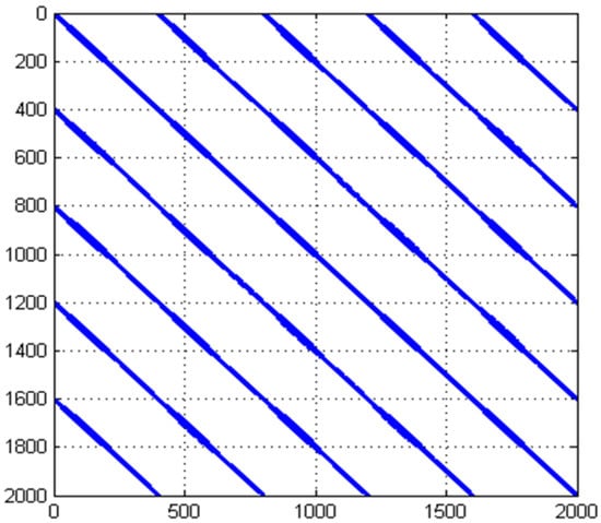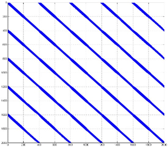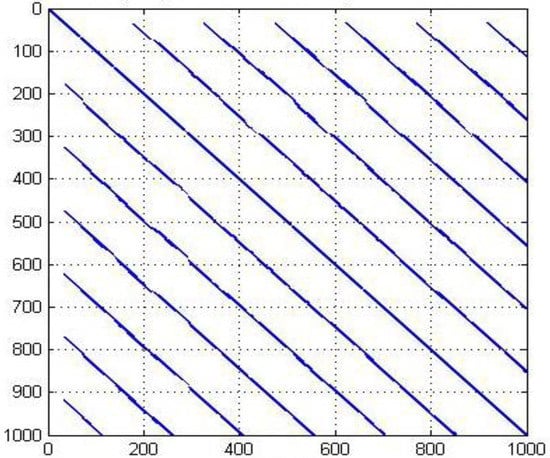 The recurrence plot representation in Figure 5 for the filtered chaotic signal corresponds to a quasi-sinusoidal signal obtained from the Lorentz chaotic system by using the control method described in Figure 2.