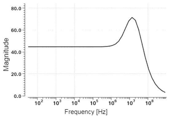 Similarly, the input impedance transfer function is given approximately by Equation (2). It is almost constant (Z = 44 ) at low frequencies and below 73 for all in-band frequencies, as shown in Figure 4.