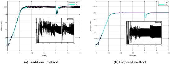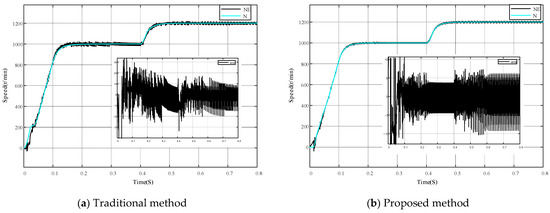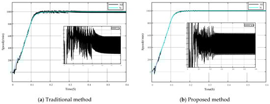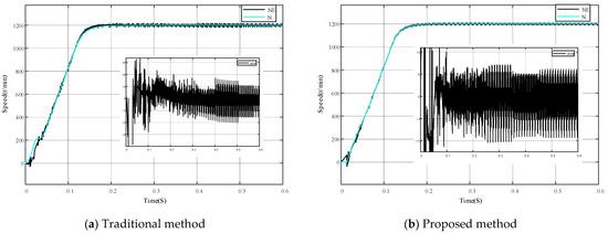 Figure 5, the motor speed is 1000 r/min. After a stable operation, the speed estimation error obtained by using the traditional method is 10 r/min, while the speed estimation error obtained by using the proposed method is only 4 r/min.