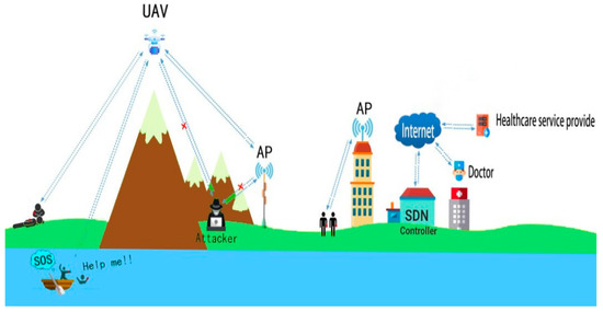 Problems in traditional methods based on username/password authentication or a dynamic key with a low-security level and RSA certification require a long session key that does not meet basic requirements in UAV networks. The control plane is critical in software-defined networks and executes numerous programs, software, and algorithms. Because the controller’s primary concern is security, it can be also accessed remotely in the event of an attacker or an intruder hijacking the controller and jeopardized the entire network. An intruder can steal secret information or videos captured by a drone and physically misuse them. Moreover, they can run harmful applications on the controller, install malicious software, change the route of instructions given by the user, and redirect different mechanisms which can affect the network or damage the whole network of UAVs. This can lead to the loss of networking devices, UAVs, and other hosts, resulting in significant financial losses.
