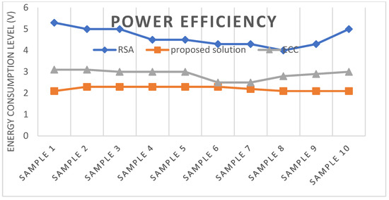 A comparison between algorithms provides more possibilities to choose an algorithm to provide security more easily. The statistics received from each copy demonstrate the network’s encryption implementation as a success. A part of the data packet is the ratio of the data packet to other packets (such as control set packets). The total delay of all packets is the ratio of all delivered packets to all received packets. Moreover, simulation is the reason for the average delay. These three similarities have a 90% transmission rate and 65.93 percent data packet sharing. However, the overall latency is 19.67 ms for RSA encryption. The delay is dependent on many other factors, for example, power suspension, as a rapid fluctuation in the current can disturb the line transmission rate as shown in Table 1. If the algorithm can consume fluctuated power, it can create more congestion on the network, making it likely that the delay time increases above 45 ms. Hence, it should be noted that the line transmission rate can be disrupted if the current fluctuates rapidly.