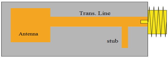 In practice, several antennas use stubs as part of their components. Generally, the transmission line losses are negligible, and the input impedance of the stub is considered purely reactive. This impedance depends on the stub type, which can be either an open or short circuit, and on its length. As result, stubs can behave as frequency-dependent capacitors or frequency-dependent inductors. This property makes the stubs very useful in any mechanism used for antenna impedance matching circuits as shown in Figure 4. Furthermore, a single stub will only achieve a perfect matching at a narrow frequency band while wideband matching may require several stubs spaced along the main transmission line (i.e., antenna feed line).