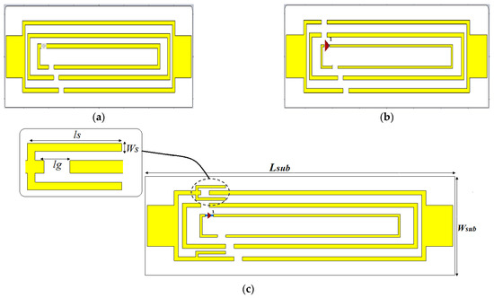 Proposed structure: (a) without gaps and stubs; (b) with gaps; (c) with gaps and stubs.