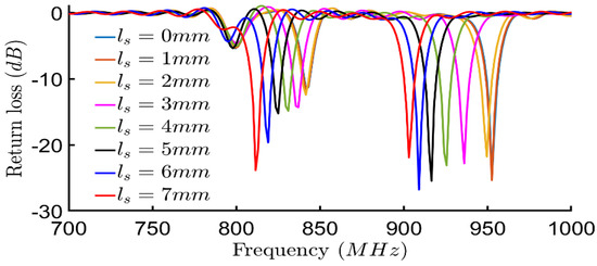 Return loss parameter of the proposed structure vs. different stub lengths ls.