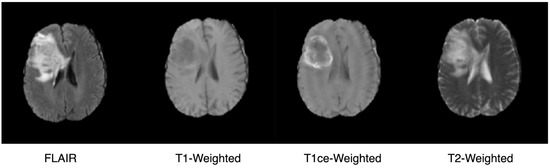 - Menze, B.H.; Andras, J.; Stefan, B.; Jayashree, K.; Keyvan, F.; Justin, K.; Yuliya, B.; Nicole, P.; Johannes, S.; Roland, W.; et al. The multimodal brain tumor image segmentation benchmark (BRATS). IEEE Trans. Med. Imaging 2014, 34, 1993–2024. [Google Scholar] [CrossRef] [PubMed]