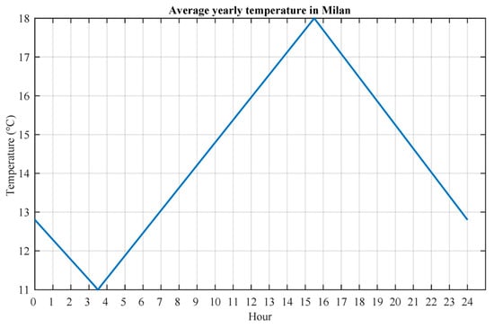 Therefore, the relationship between the number of cycles, i.e., the Ah charge throughput provided by the cell, and the nominal capacity of the cell is more than linear. For example, at 25 °C, the 1.5 Ah cell of the model reaches the EOL, with 80% capacity left, after almost 2700 cycles and more than 4000 Ah charge throughput, while a 60 Ah cell reaches the same EOL after almost 6000 cycles, with more than 350,000 Ah of charge throughput. The c2 coefficient is also included in the model as a multiplication factor for the number of cycles for the total charge throughput. Its characteristic depends on temperature as data reported in Table 4 (showing different expected lifetimes), and it is computed as in Equation (22).