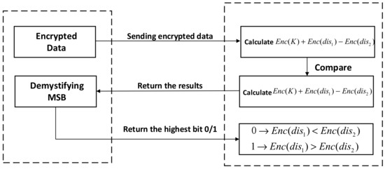 - Jiang, L.; Cao, Y.; Yuan, C.; Sun, X.; Zhu, X. An effective comparison protocol over encrypt-ed data in cloud computing. J. Inf. Secur. Appl. 2019, 48, 102367. [Google Scholar]