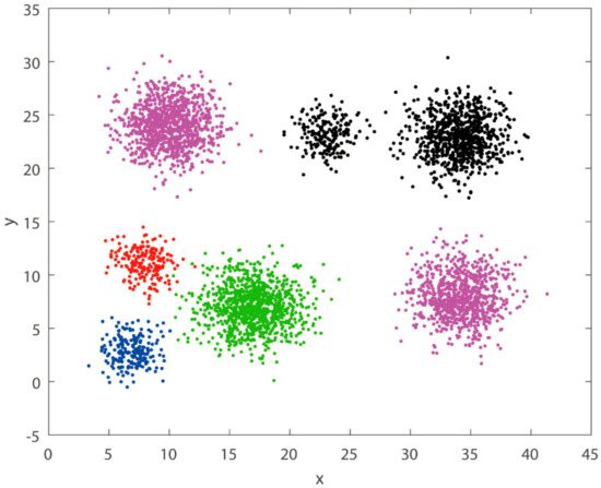 The DBSCAN algorithm is a common clustering algorithm used to construct clusters in a dataset and to discover noisy data [33,34]. Compared to the equally common K-means clustering algorithm, the DBSCAN algorithm does not require a predefined number of clusters and is suitable for the construction of clusters of any shape, even unconnected cyclic clusters. Due to the minimum number of points restriction, the DBSCAN algorithm avoids the single-link effect compared to K-means and, therefore, has better clustering results for any shape of data distribution.