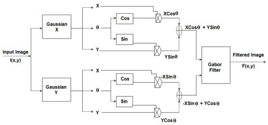 The real part of the filter as represented in Equation (10) smooths the image while the imaginary part is used for edge detection. In the architecture representation of Equation (4), includes the spatial coordinates and denotes the coordinates of the input image pixel; ‘’ is the angle at particular orientation from 0 to 360 degrees. For better understanding the purpose of the design architecture, is denoted as and their values are given by Equation (4). The is obtained by passing through as shown in Equation (14),