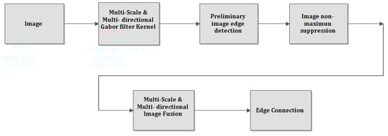 The steps involved in Gabor filter based edge detection process are illustrated in Figure 3. In edge detection applications, the odd function of the Gabor filter is applied for extracting the edge particulars of the image and for achieving good robustness results relative to noise. Edge information in different directions of the image is detected by constructing the filter banks with various scales and directions with the parameters described, then the non-edge points are suppressed, and the edge information is combined in different directions to obtain complete edge information. At the end, all edges of the image are concatenated to obtain edge information.