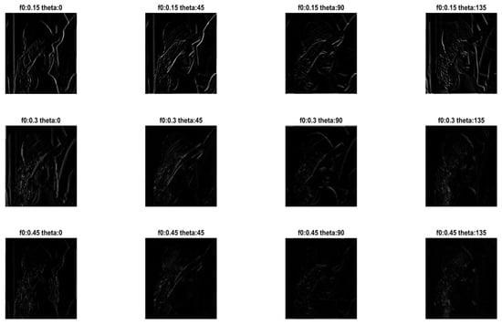 Equation (4) provides the highest response of the filter by controlling the Gabor’s filter central frequency . The Gabor filter uses many parameters that can be tuned or changed to extract useful information. These parameters are described below.
