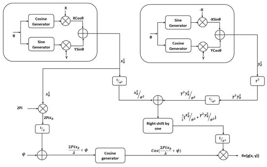 - Kayalvizhi, E.; Sasirekha, N. A modified low power architecture for Gabor filter. In Proceedings of the 2016 International Conference on Communication and Signal Processing (ICCSP), Melmaruvathur, India, 6–8 April 2016; pp. 0597–0600. [Google Scholar]
