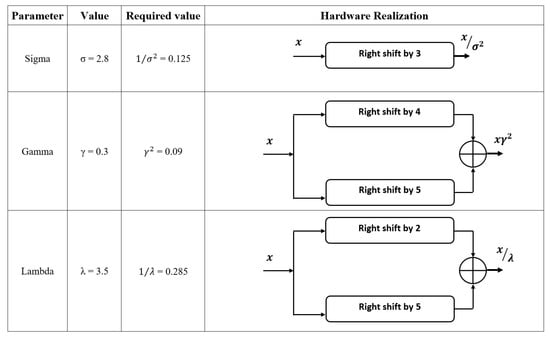 Hardware models for realizing the fractional values of parameters involved in the Gabor function.