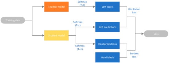 - Hinton, G.; Vinyals, O.; Dean, J. Distilling the knowledge in a neural network. arXiv 2015, arXiv:1503.02531. [Google Scholar]
