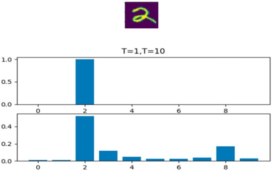 If t is close to 0, the maximum value will be closer to 1, and other values will be close to 0, which is similar to one-hot coding. If t is larger, the distribution of the output results will be smoother, which is equivalent to smoothing and plays a role of retaining similar information. If t equals infinity, it is a uniform distribution. Figure 2 is the probability distribution diagram of softmax with different T values on the handwritten digital dataset MNIST. We can see that the softened probability distribution can reflect that this handwritten digital picture has a certain degree of similarity between 2 and 8.