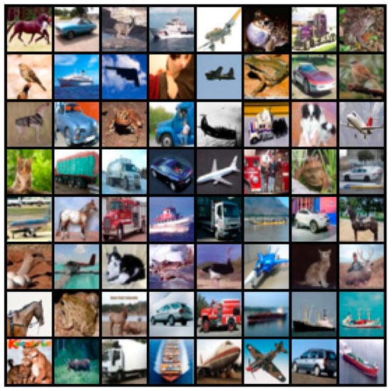 In order to verify the effect of the fusion pruning algorithm proposed in this paper, we validated it on the cifar-10 dataset. The cifar-10 dataset contains 60,000 32 × 32 color images in 10 different categories, including 50,000 training images and 10,000 test images. Figure 8 is a partial picture of cifar-10. The experimental equipment was a PC with windows system, the cpu was intel i5-6400, the Gpu was GTX960M and the running memory was 12 GB.