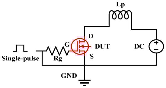 The circuit shown in Figure 5 is used to simulate the SC process. In the circuit topology, the parasitic inductance (Lp) is set to 200 nH, the gate resistance (Rg) is 2.5 Ω and DC drain-source voltage is 600 V. In addition, the single gate pulse Vgs is switched between 0 V to 15 V with varied pulse time, which controls the SC times applied to the device under test (DUT).
