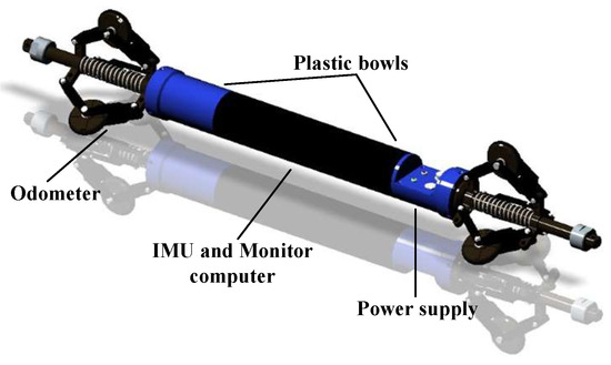 As the core components of inertial measurement unit (IMU), the gyroscope and accelerometer measure the acceleration and angular velocity of the pipeline inspection gauge (PIG) (Figure 1); therefore, the position can be calculated via SINS mechanization [10]. In a pipe detection with a small nominal diameter that is less than 50 mm [11], a small-sized micro electromechanical system IMU (MEMS-IMU) is always utilized.